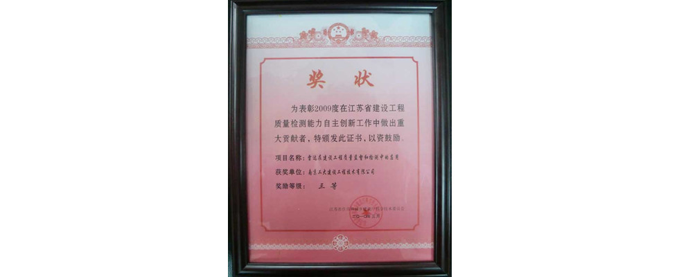 江蘇省建設(shè)工程質(zhì)量檢測(cè)技術(shù)創(chuàng)新團(tuán)隊(duì)一等獎(jiǎng)