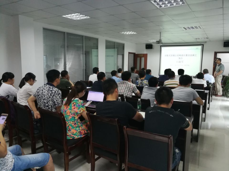 會議上王滋軍教授就“裝配式混凝土結(jié)構(gòu)設(shè)計(jì)要點(diǎn)及施工簡介”作了報(bào)告,王滋軍教授首先闡明了裝配式建筑在我國發(fā)展的必要性,而后主要介紹了裝配式混凝土結(jié)構(gòu)的設(shè)計(jì)要點(diǎn)及施工過程。李寧、楊放高工就“裝配式混凝土結(jié)構(gòu)施工質(zhì)量檢驗(yàn)探討”作了報(bào)告,李寧高工指出裝配式結(jié)構(gòu)質(zhì)量檢驗(yàn)重點(diǎn),楊放高工主要介紹了我公司可應(yīng)用于裝配式建筑檢測的幾種特色檢測技術(shù)。劉杏杏工程師就“現(xiàn)代木結(jié)構(gòu)檢測與施工驗(yàn)收”作了報(bào)告,主要介紹了裝配式木結(jié)構(gòu)建筑體系和裝配式木結(jié)構(gòu)建筑檢測驗(yàn)收內(nèi)容。
