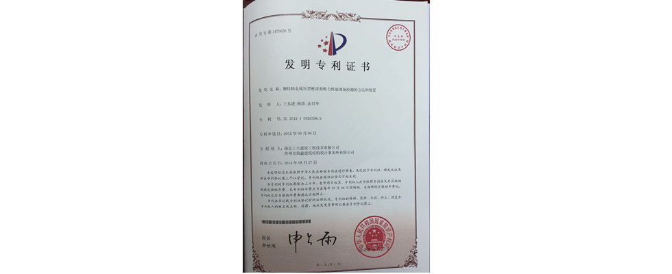 發(fā)明專利—鋼結(jié)構(gòu)金屬壓型板屋面吸力性能現(xiàn)場檢測方法與裝置